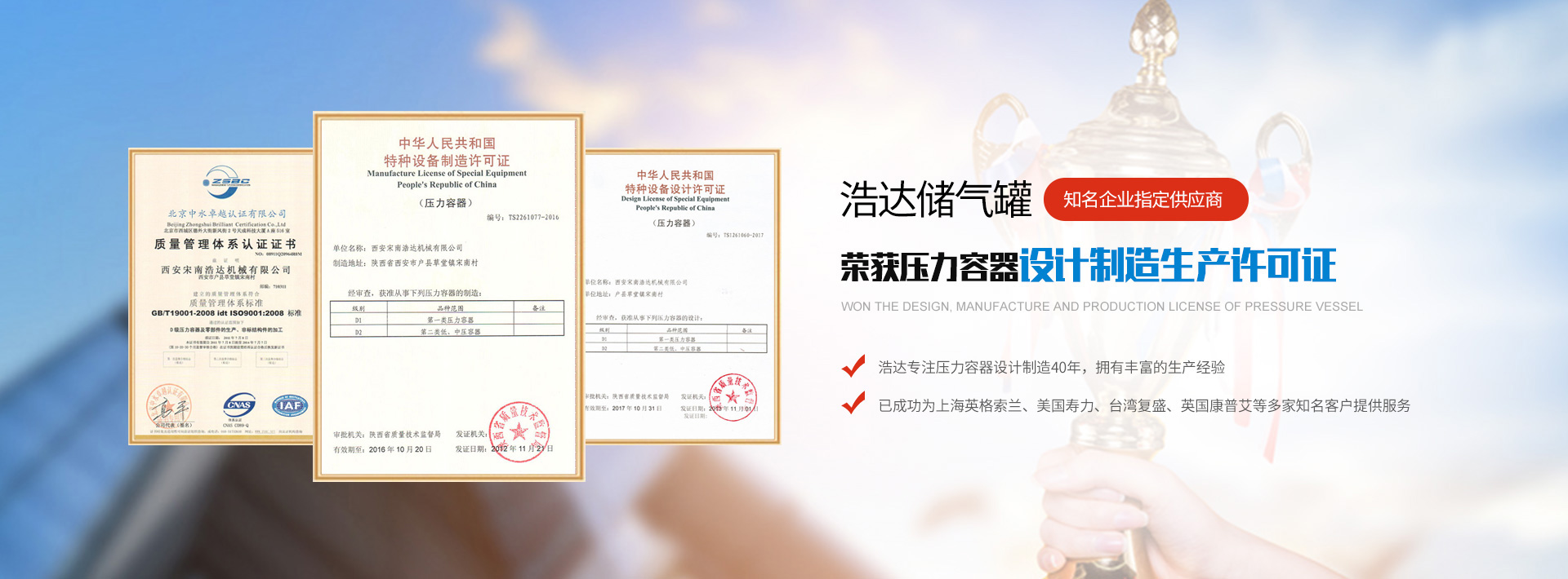 西安宋南浩達機械有限公司是陜西首批取得壓力容器制造許可證的廠家,是陜西省定點生產壓力容器的專業(yè)工廠,現(xiàn)有近40年的制造歷史。